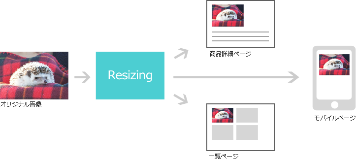 オリジナル画像をResizingを通すことで様々なサイズに自由にリサイズが可能です。
